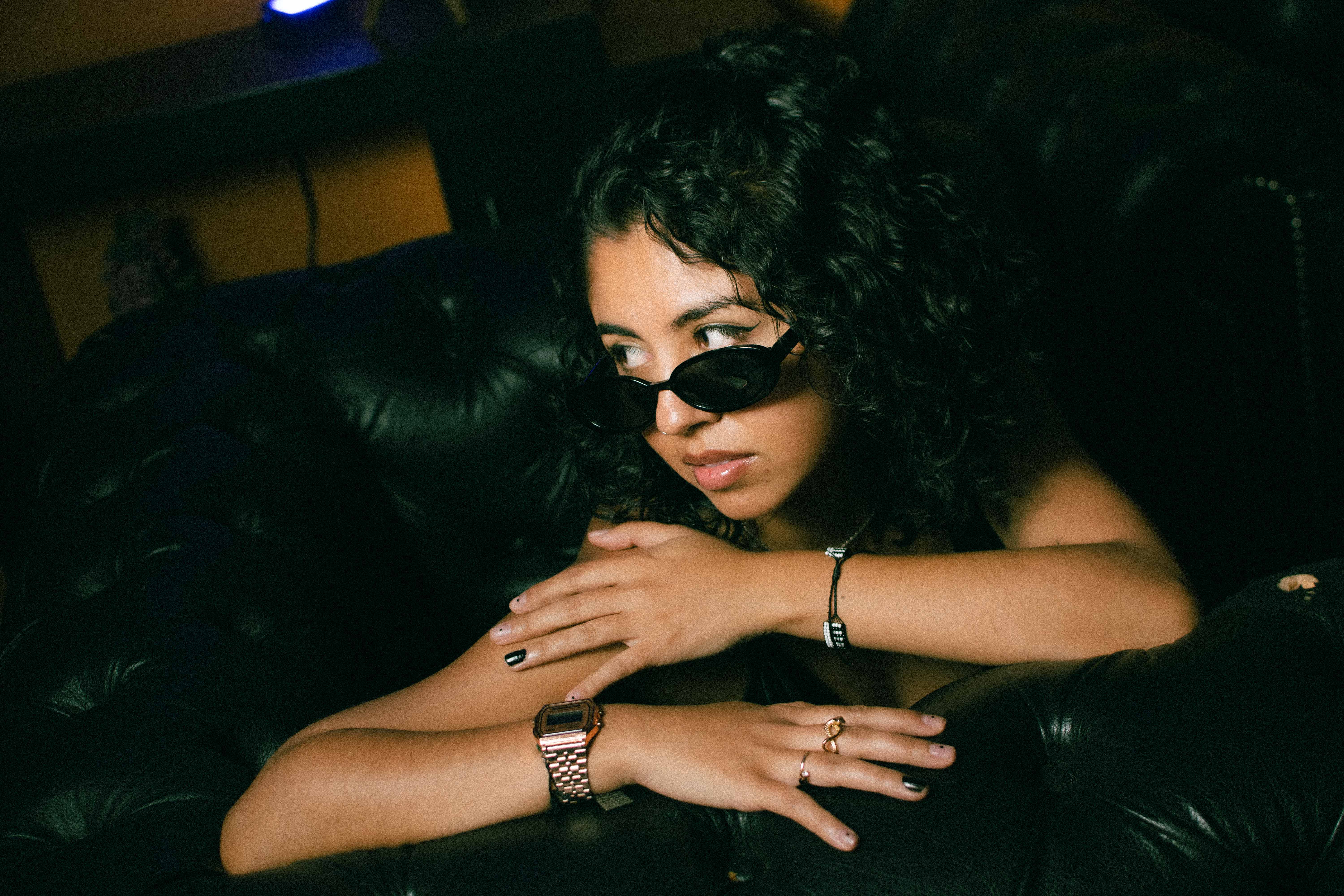 Curly haired Latina plays with her big tits and shaking her body for you