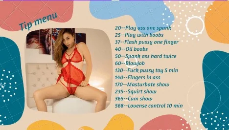 Doggy Style, Spanking, Erotic Dance, Camel Toe, Fingering, Dildo or Vibrator, Dirty Talk, Striptease, Deepthroat, Squirt, Oil Show, Cowgirl, Orgasm, Masturbation, Ahegao, Topless, Twerk, Handjob, Sex Toys, Anal Toys, Mistress, Cooking, Shower, Facial, Smoking, Blowjob