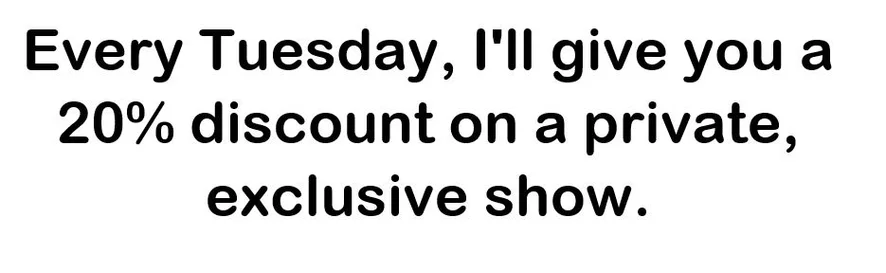 Every Tuesday I will have special discounts for us to enjoy together.