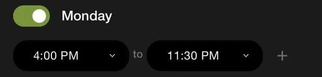 -Monday from 16:00 PM to 23:00 PM