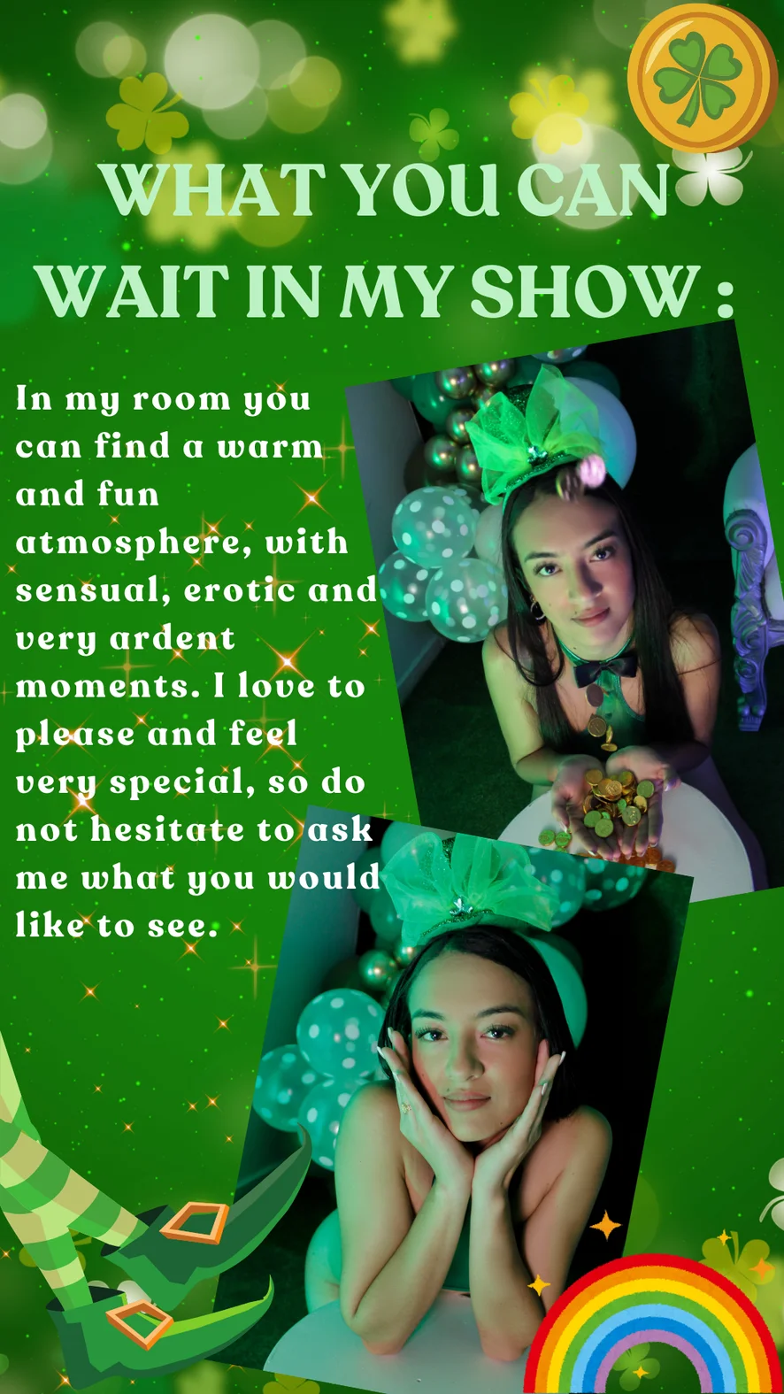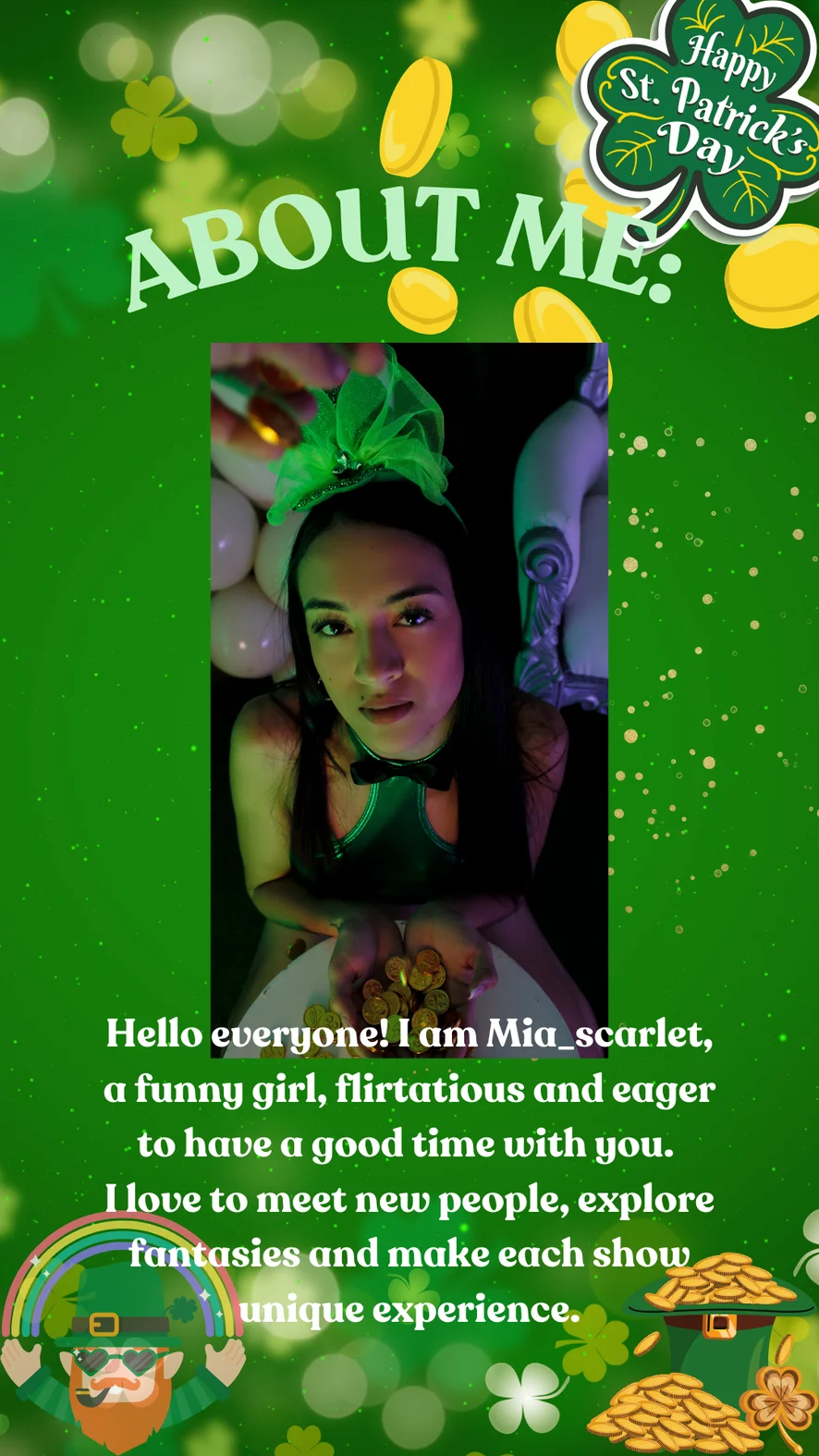 Hi everybody my name is Mia, from colombia. I really like to being here with you, i love the good company that make me feel so horny.