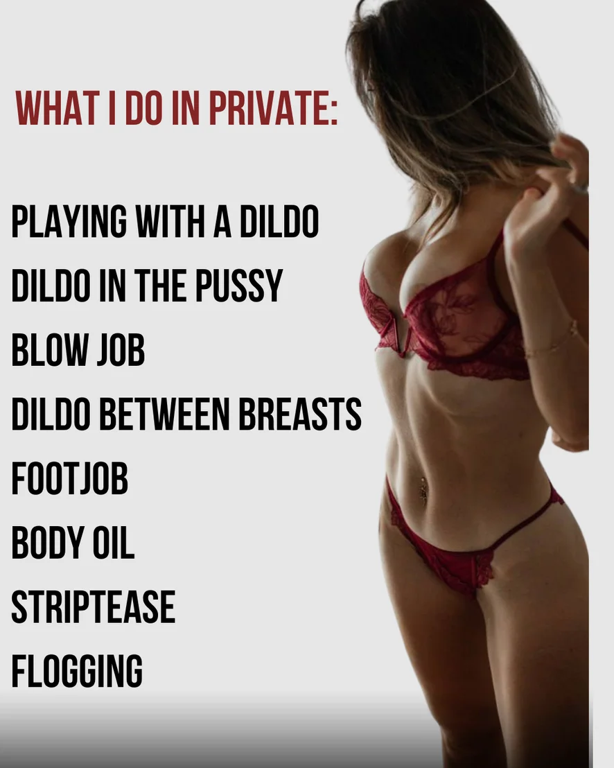 Heels, Doggy Style, Upskirt, Shower, Yoga, Camel Toe, Outdoor, Foot Fetish, Flashing, Erotic Dance, Facesitting, Jerk-off Instruction, Striptease, Dirty Talk, Cooking, Nylon, Cock Rating, Role Play, Spanking, Oil Show