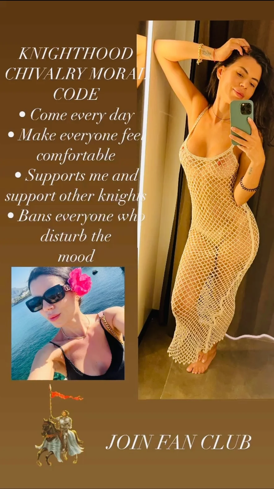 Not everyone can be a knight. They are the best thing the site could do for a model. In a cold rainy day the knight is there to support, encourage, give pleasure, talk or listen. My knights are very special, each one in his own way. They are very different, but all of them are looking for the same simple thing: my happiness. For this, I want to Thank you from the bottom of my heart and I hope to give back as much as I receive. I'm very proud they are my knights and I hope they are proud I m their Queen♥️
