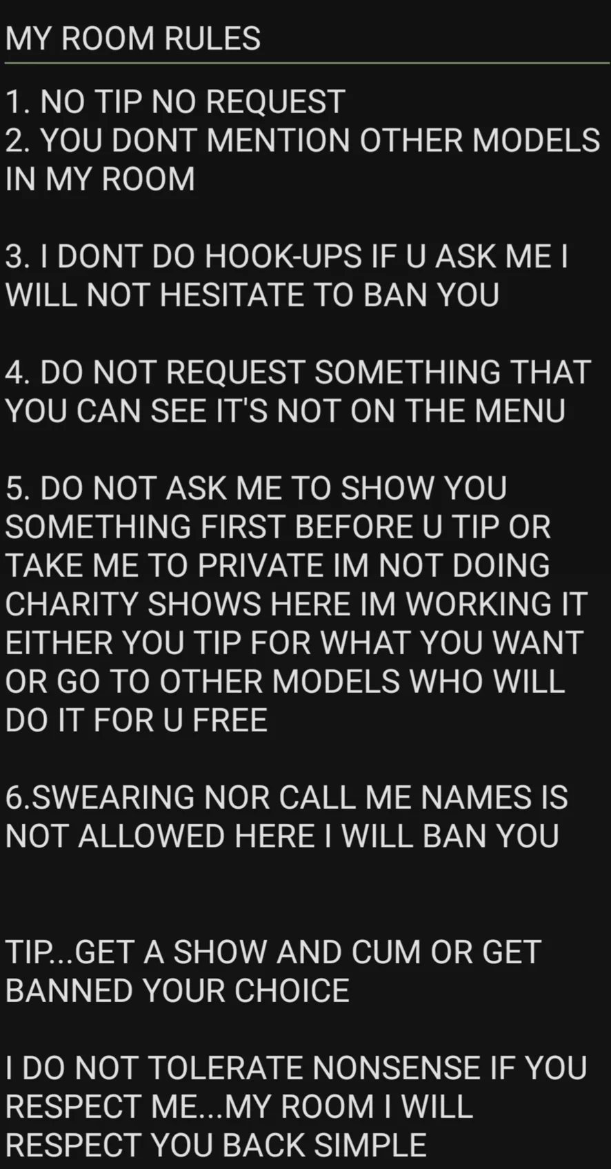 MY ROOM!!! MY RULES!!! LET RESPECT EACH OTHER