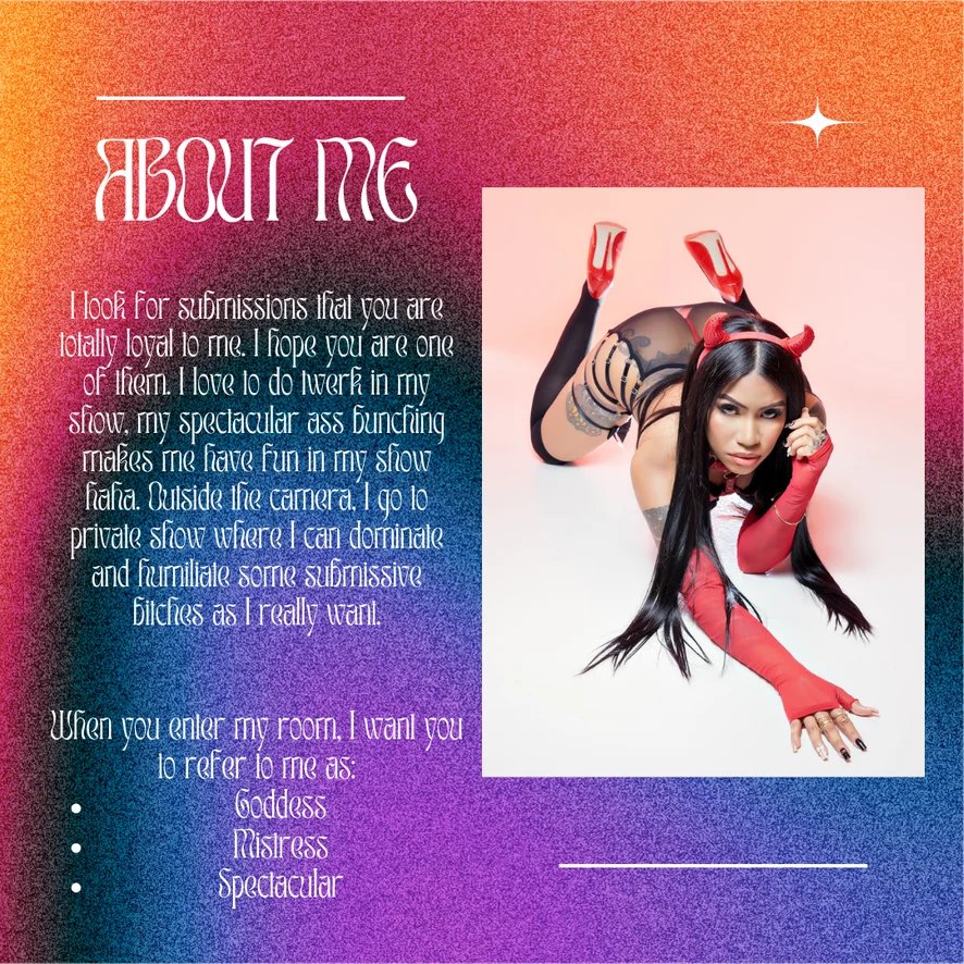 Erotic Dance, Cuckold, Dirty Talk, Facesitting, Heels, Cock Rating, Foot Fetish, Nylon, Sex Toys, Blowjob, Latex, Doggy Style, Camel Toe, Strapon, Masturbation, Tittyfuck, Squirt, Dildo or Vibrator, Jerk-off Instruction, Role Play, Pegging, Humiliation